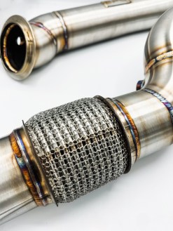 Our downpipes feature a flex pipe section that reduces unwanted vibration and minimizes stress for enhanced durability.