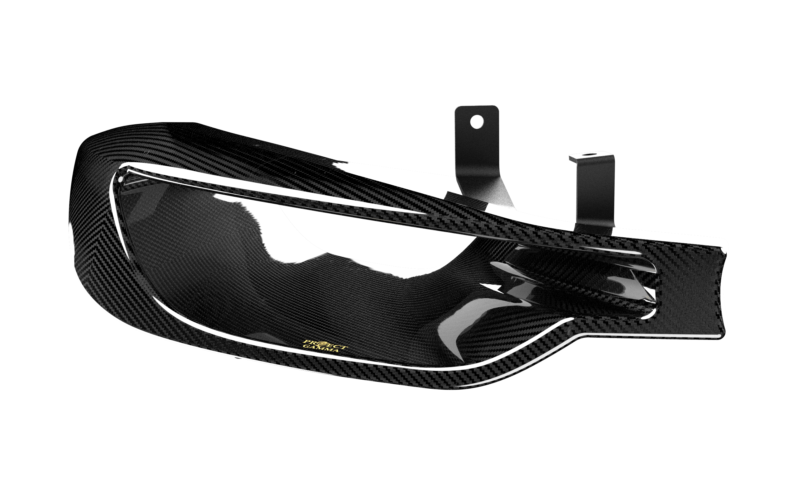 Project Gamma carbon fiber headlight delete for the F30 chassis, intended to be used for single turbo applications, features a direct cold airflow to the intake. This headlight delete also adds a very unique visual look to the vehicle. The airflow to the turbos is significantly increased by eliminating any obstructions in front of the intake.