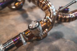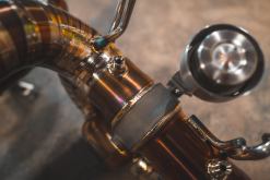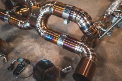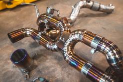 When Ferrari decided to ditch the glorious 4.5-liter naturally aspirated engine in favor of the 3.9-liter twin-turbo, Enzo shuddered in his grave. Gone was that glorious 9,000 redline, replaced with boost noises. From the factory, the F8 is incredibly subdued but with our exhaust setup and free-flow front pipes, that all changes. Out of the turbos, our mandrel bent free flow front pipes measure 3 inches bringing out incredible turbo spool and deep rich V8 sound. Connecting to our valved rear section exhaust gases travel through the X pipe and then out of the titanium exhaust tips. When operating in the valves close mode, the exhaust gases travel through a small diversion section with a resonator and other to reduce coldstart sound levels and improve drivability. Don’t let your Ferrari F8 be lacking in the exhaust sound department.