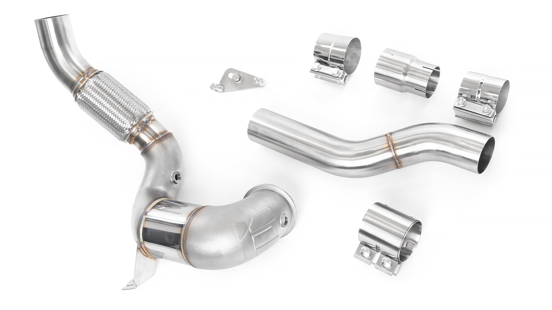 Adding an iE catback exhaust system to your MK8 adds an instant punch of sound, fun, and character, but it doesn’t have to end there. The factory downpipes are full of sound-deadening restrictions that hold you back from experiencing the full exhaust experience. If you find yourself wanting more, convert your iE catback into a true turbo-back with our 3″ free-flowing downpipe and embrace the rowdy.