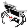 The Twin Extention kit comes with the 1x Setrab 19 row oil cooler, 1x stainless Mosselman bracket, 1x Mounting bracket, and a hose kit (1 oil hose).