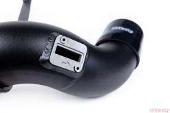 One of the easiest ways to gain horsepower and improve your throttle response on the BMW 40i B58, turbocharged engine, is with an air intake kit. VR Performance new short ram air intake kit for the M240i, 340i, and 440i is a great first modification to do. The intake kit is a complete replacement for the OEM air box. The kit includes a new aluminum intake tube with CNC machined MAP sensor mount, precision cut heat shield with mounting tabs, and a new high flow air filter. The MAP sensor mount has been CNC machined out of 6061 aluminum to retain the factory fitment for proper readings.Ā It is than TIG welded to the aluminum intake tube for proper placement. The main part of the intake is the high flow air filter. It features an inlet on the end cap to allow for an even larger volume of air to come through than a standard cone filter. The design improves air filtration while increasing air flow. The air filter is finished off with the VR logo on the rubber end cap. The heat shield is water jetted from aluminum with rubber trim to provide a secure fit and seal when the hood closes. It is designed to prevent direct hot air from the engine being sucked into the filter. Each heat shield features the VR logo neatly cut out from the shield panel for added style. All parts are finished in a matte black powder coat for an OEM look while the cylindrical air filter features a blue element matching to the BMW Roundel logo. With the new air filter, your turbocharger can breathe better than the factory intake allows. This is noticeable as you step on the accelerator and hear the turbo work (sucking air noise). Release the throttle and the factory blow off valve noise (whoosh) is more audible and keeps you entertained through the gears! Ā